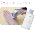 首同様、手の甲も年を重ねる毎に年齢を感じさせてしまう重要な部分。紫外線にもっともさらされやすい部分でもあるので、念入りにブライトアップアクアのビタミンC誘導体をイオン導入! 白魚のような手をめざしてケア!